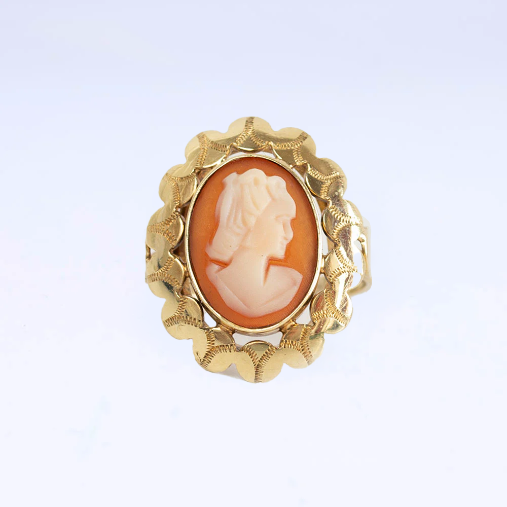 Vintage 14 karaat gouden camee ring met gouden sierrand