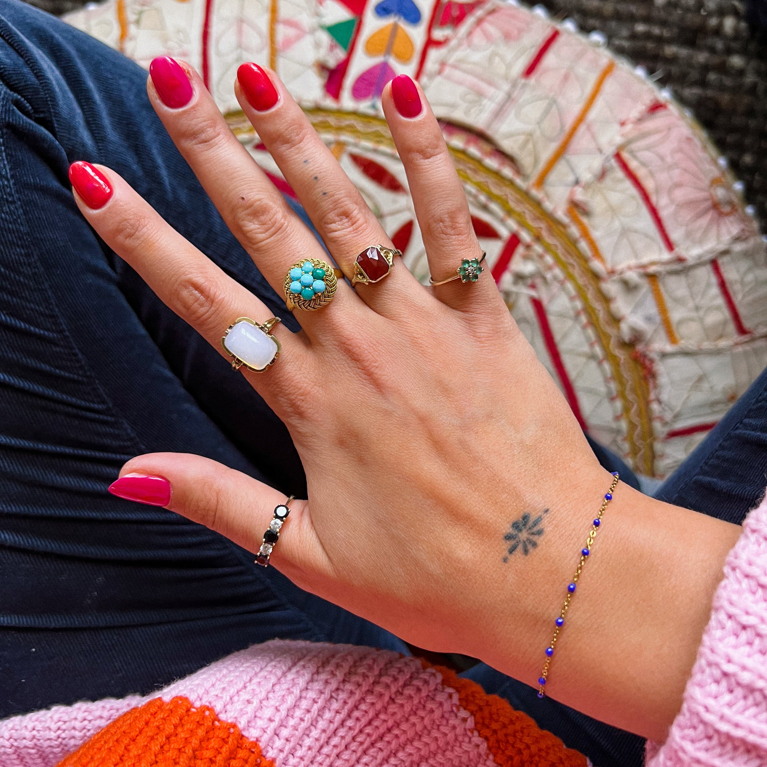 Vintage gouden ringetje 14 karaat met turquoise steentjes