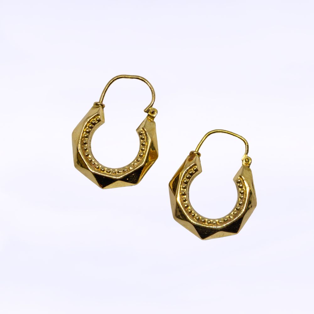 Vintage oorbellen hopes met driehoekige vormen. Gemaakt van 14 karaat goud.