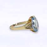 Vintage ring met heel heldere blauwe aquamarijn edelsteen. Gemaakt van 14 karaat goud en beschikbaar in maat 18,5. Deze vintage ring kan worden aangepast in maat indien nodig door een goudsmid. Vraag ons naar de mogelijkheden.