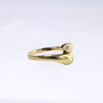 Deze 8 karaat gouden ring is heel bijzonder. Ingelegd met 2 echte diamantjes lijkt het wat op een slang. En laten deze dieren nou eens een super mooie spirituele betekenis hebben; wedergeboorte, wijsheid en vernieuwing staan hierbij centraal. En wist je ook al dat bij alle vintage ringen de maten tot 2 maten verschil kan worden aangepast door een goudsmid? Deze ring heeft maat 18,25